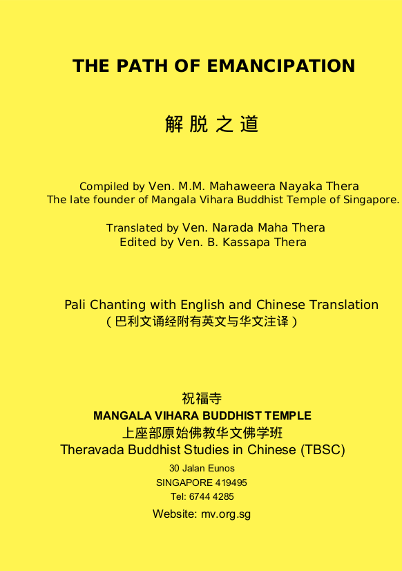This book contains Parittas and Suttas that are recited during MV’s full-moon and new-moon services, Chinese New Year, Vesak Day, Sanghamitta Day, and Saturdays.